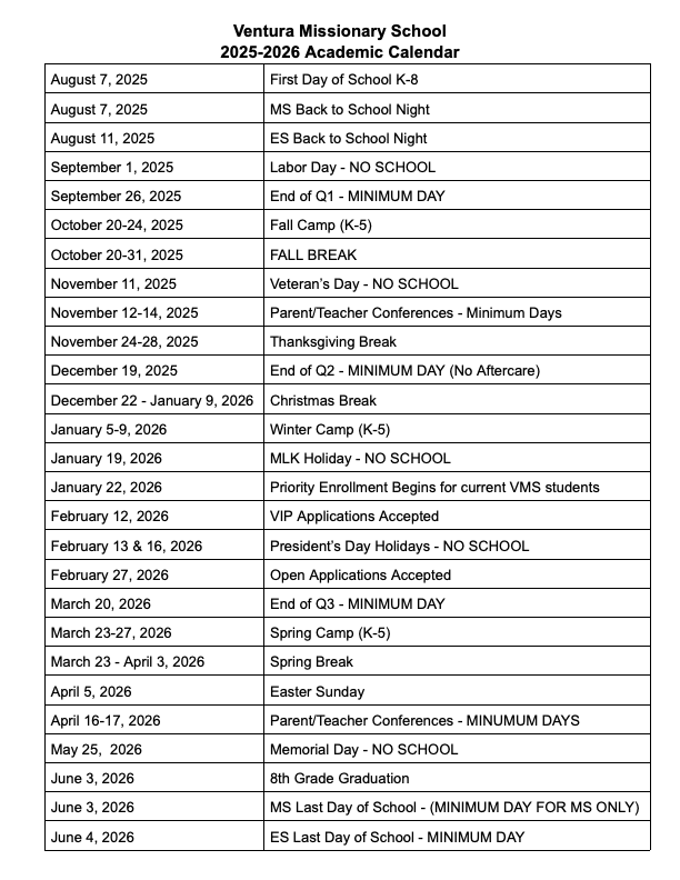 2026-2027 School Year Admissions Important Dates